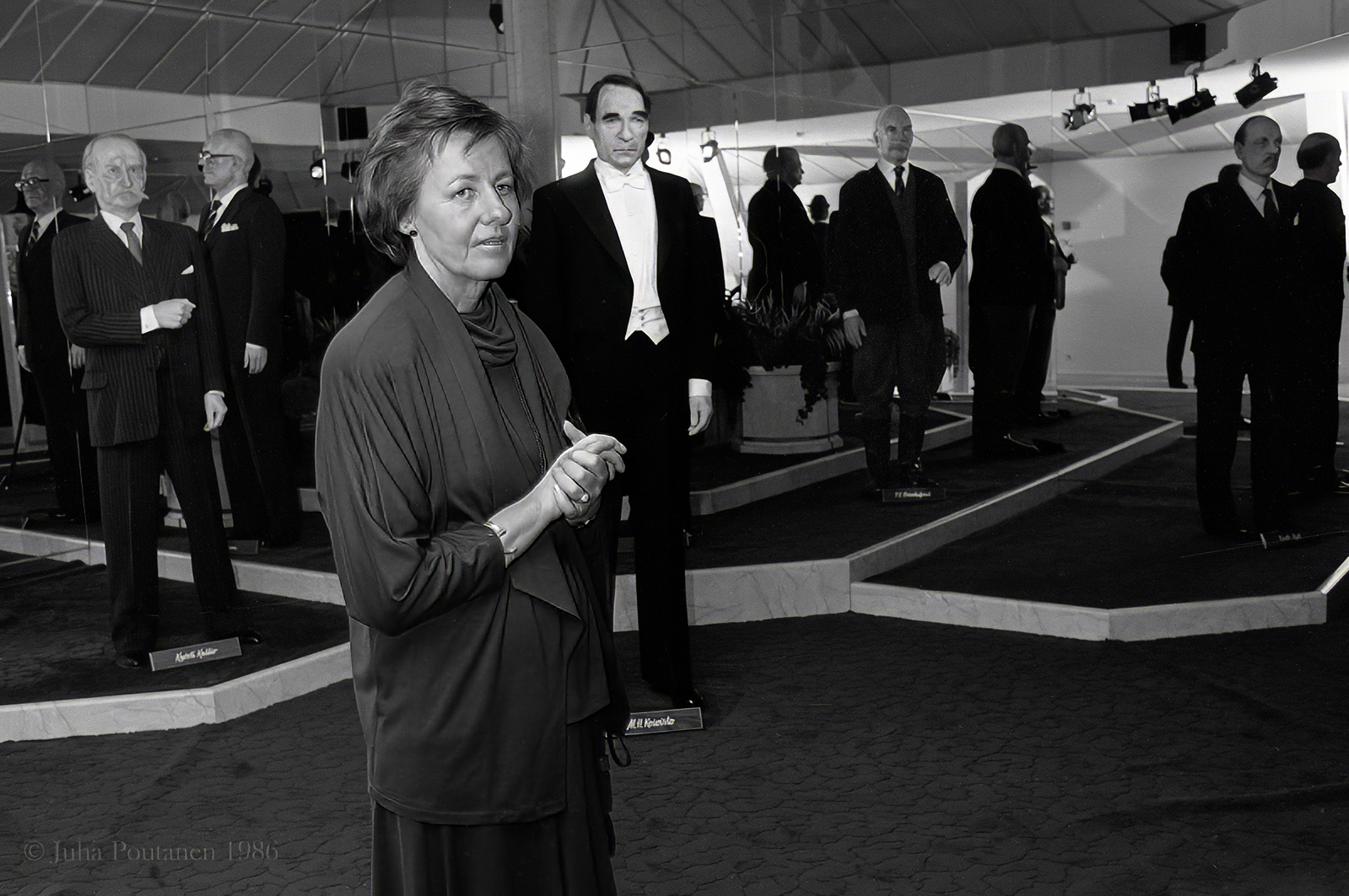 Vahakabinetti, Mikkeli 1986. Tellervo Koivisto Mikkelin matkailun vieraana vahakabinetissa.