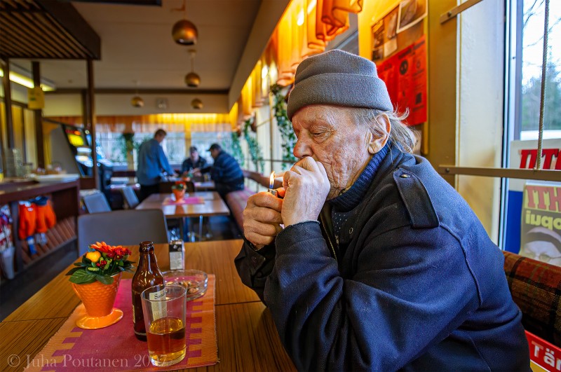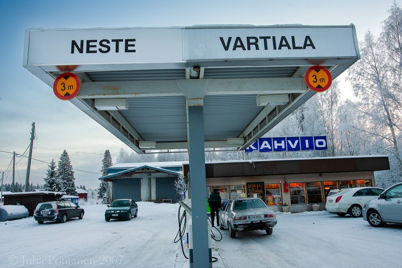 Vuonna 2007 kuvasin eri huoltoasemia ja etenkin niiden baareja. Erityisesti Riistaveden Vartialan Neste oli yksi mielenkiintoisimpia paikkoja. Ohikulkijat ja lähiseudun asukkaat "viihtyivät" asemalla kuin kotonaan. Ajat ovat muuttuneet ja pienet ovat yhä harvinaisempia isojen "aakkosten" paineessa. Reviirit on jaettu uudestaan, kohtauspaikat harvenevat.